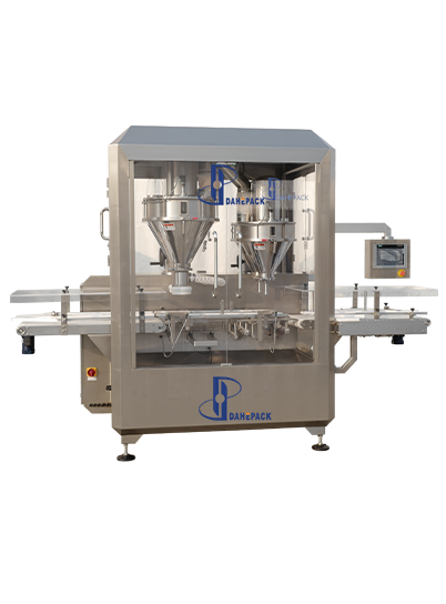 該設(shè)備是我公司在粉末罐裝領(lǐng)域長期實(shí)踐的基礎(chǔ)上,摒棄原有轉(zhuǎn)盤式喂罐設(shè)計理念,而全新設(shè)計的一款四工位罐裝機(jī)。雙排主輔雙頭充填系統(tǒng)和喂罐系統(tǒng),保證了高精度同時又去除了轉(zhuǎn)盤式喂罐系統(tǒng)清理不便的缺點(diǎn)。主要完成高精度充填計量工作??膳c其它設(shè)備配套組成整套罐裝流水線,適用于罐裝奶粉、蛋白粉、雞粉、葡萄糖、米粉、可可粉、固體飲料等。