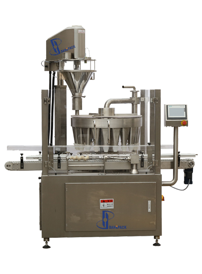 托瓶轉(zhuǎn)盤帶有振動(dòng),確保物料裝到瓶子里比較充實(shí)、不泡;