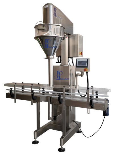 該機(jī)主要針對(duì)容易揚(yáng)塵的超細(xì)粉末及高精度的包裝要求而開發(fā)設(shè)計(jì),能完成瓶子自動(dòng)定位和升降、充填及計(jì)量等工作,它由一臺(tái)稱重式螺桿充填機(jī)、一臺(tái)鏈板輸送帶及一個(gè)氣動(dòng)定位裝置組成,根據(jù)裝在容器下面的重量傳感器給出的信號(hào)完成雙速充填、計(jì)量及升降等工作。適用于包裝添加劑、碳粉、滅火器干粉、其它超細(xì)粉末、及有高精度包裝要求的粉末等。
