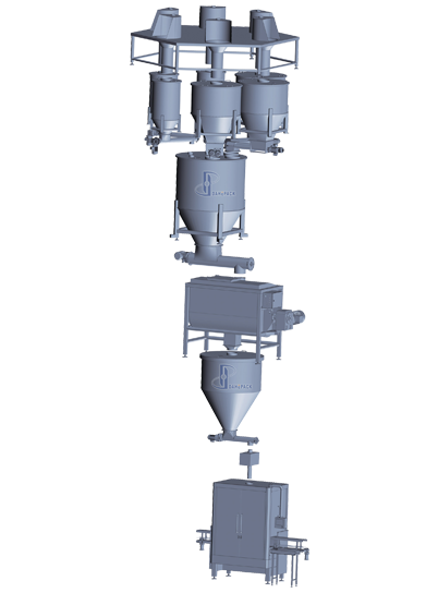 倒料、儲存、自動配料、混合和包裝系統(tǒng)